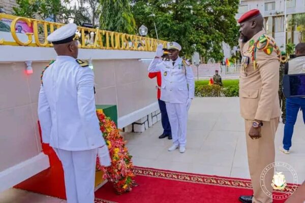 Le colonel Doumbouya procède au dépôt d’une gerbe de fleurs à la place des martyrs